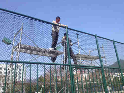 比如用鐵鉗拉開連接槽是錯誤的安裝方法。這樣的體育場護欄網錯誤安裝方法會損壞護欄網的表面保護層。影響使用壽命。還有的強行把勾花網網掛上也是錯誤的。這樣勾花網就會變形松動。把立柱間距放大就更不可以了,’這樣勾花網面松動,很容易丟失,也起不到防護的作用。球場護欄網正確安裝方法:先固定好球場護欄網第一根立柱然后把網片掛接到立柱上,緊接著掛接第二根立柱。接好后把第二根立柱固定。然后掛接第二個網片,和第三根立柱。把網面拉緊后第三根立柱固定。以此類推,一套一套的安裝即可。這樣安裝既牢固又不損壞網面。